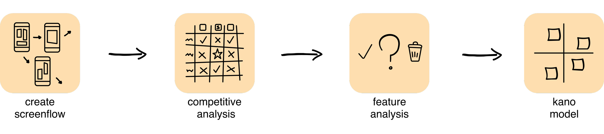 Additionally, we conducted a competitive analysis to inspire new features, such as in-app payments and automatic currency conversion. To assess the value of existing and potential features, we applied the Kano model, helping us prioritize based on user satisfaction and necessity.